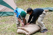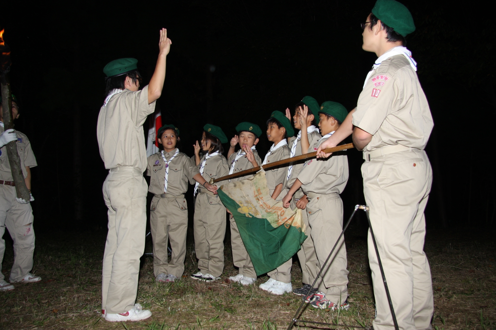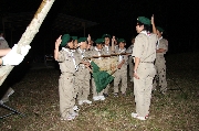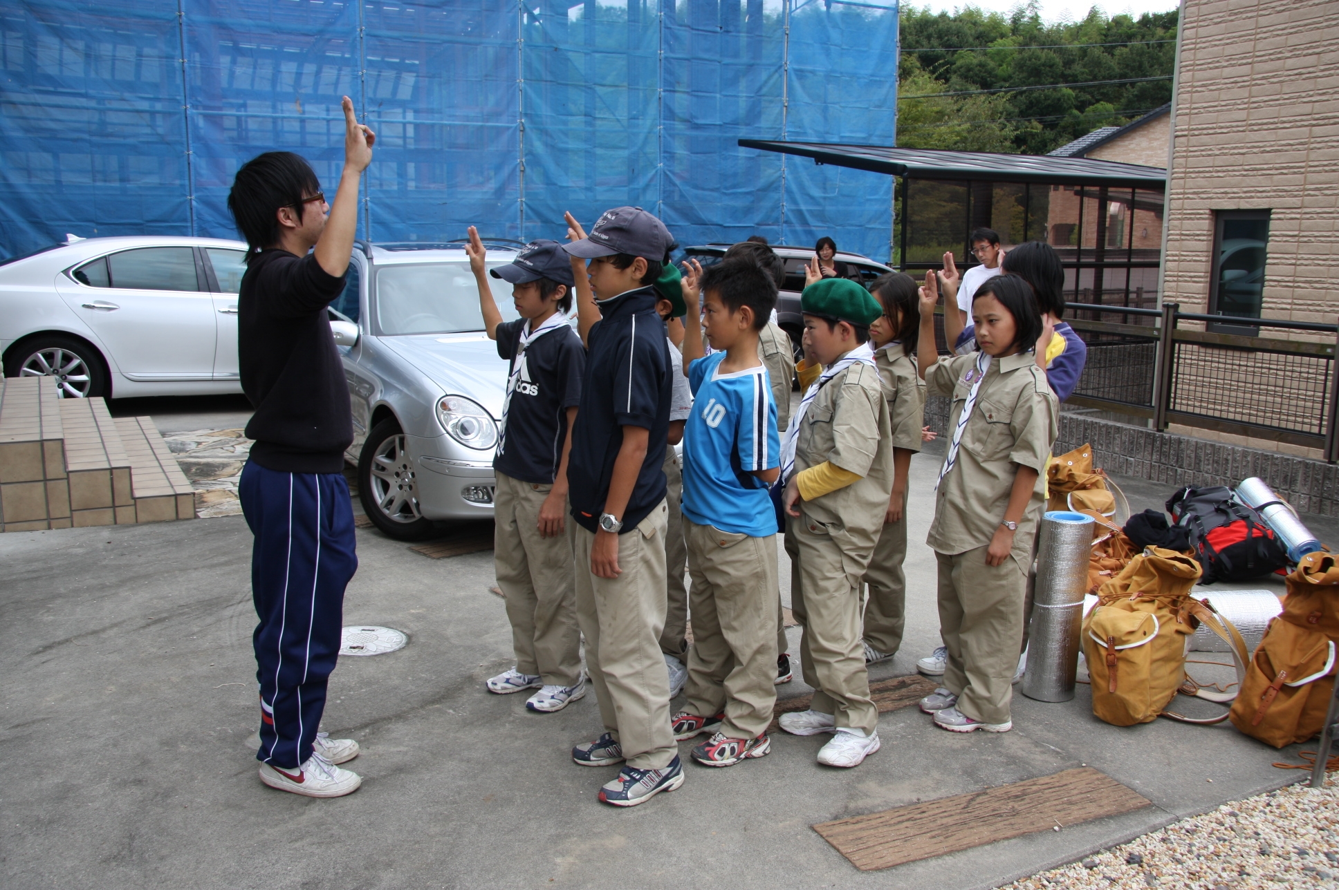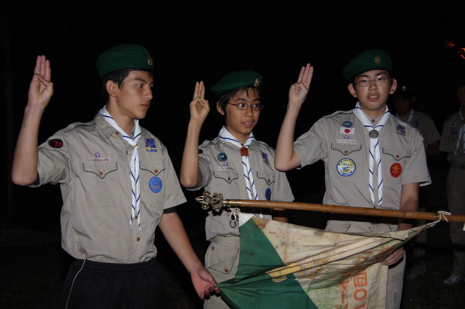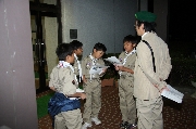 新しくカブ隊から6名を迎え入れ、ベンチャー隊に3名を送り出し、総勢11名となりました。上進式後、新入隊員はテントで寝ることになり興奮のため夜はあまり眠れなかったようでした。朝食は上手くできませんでしたが作ったものは残さずに食べようと泣きながら食べているスカウトもいました。食器洗い、テントの片付けなど積極的に手伝い、帰りは、テントや炊事道具など分担してキャンプ場から岡部宅まで2時間程かけ歩きくたくたになっていました。又、先輩スカウトの清水、平野、富樫、岡君らが新人にテントたたみ方、食事を残さず食べるようにと指導したり、帰りに隊備品を自ら率先して重い荷物を担いだりし、ずいぶんたくましくなってきました。これから一年間新しいグループで楽しく活動を続けてもらいたいと思います。(小瀬古団委員)
