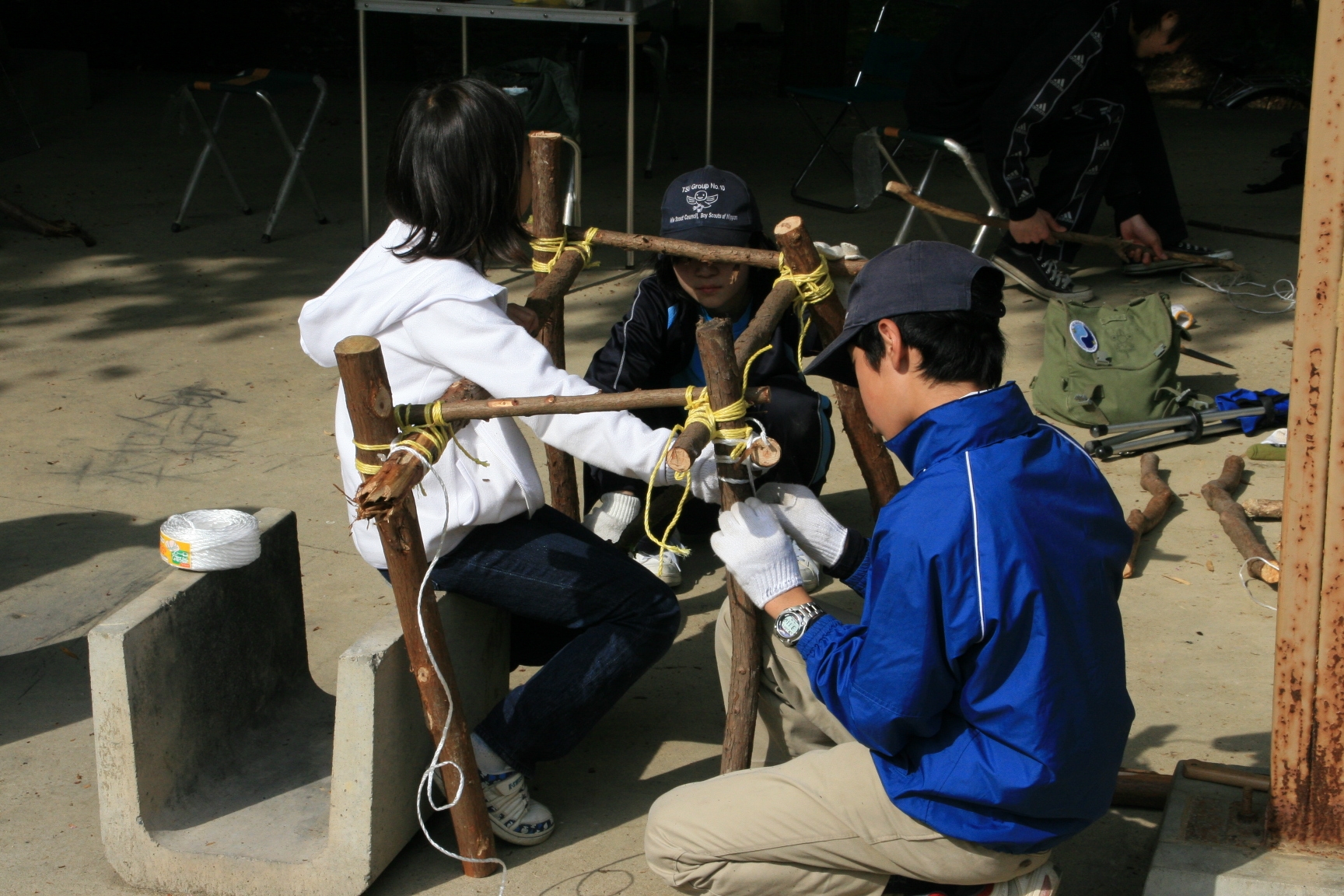 今回は、スカウト自身でキャンプにおける個人と全体目標を立て、行程計画をし実施したところ、初めての工作物であるテーブル作り、初めての手巻き寿司作りに挑み両方とも上手にできることが出来ました。
