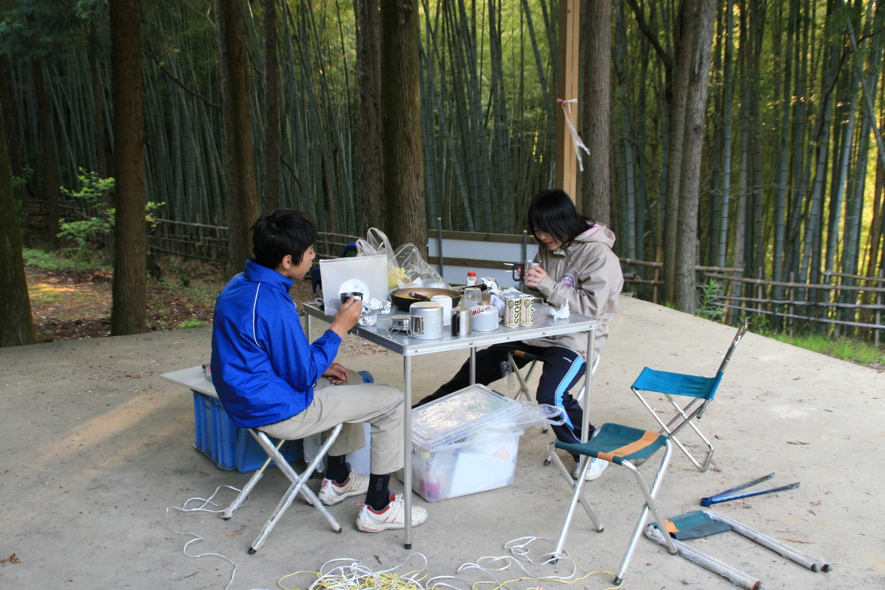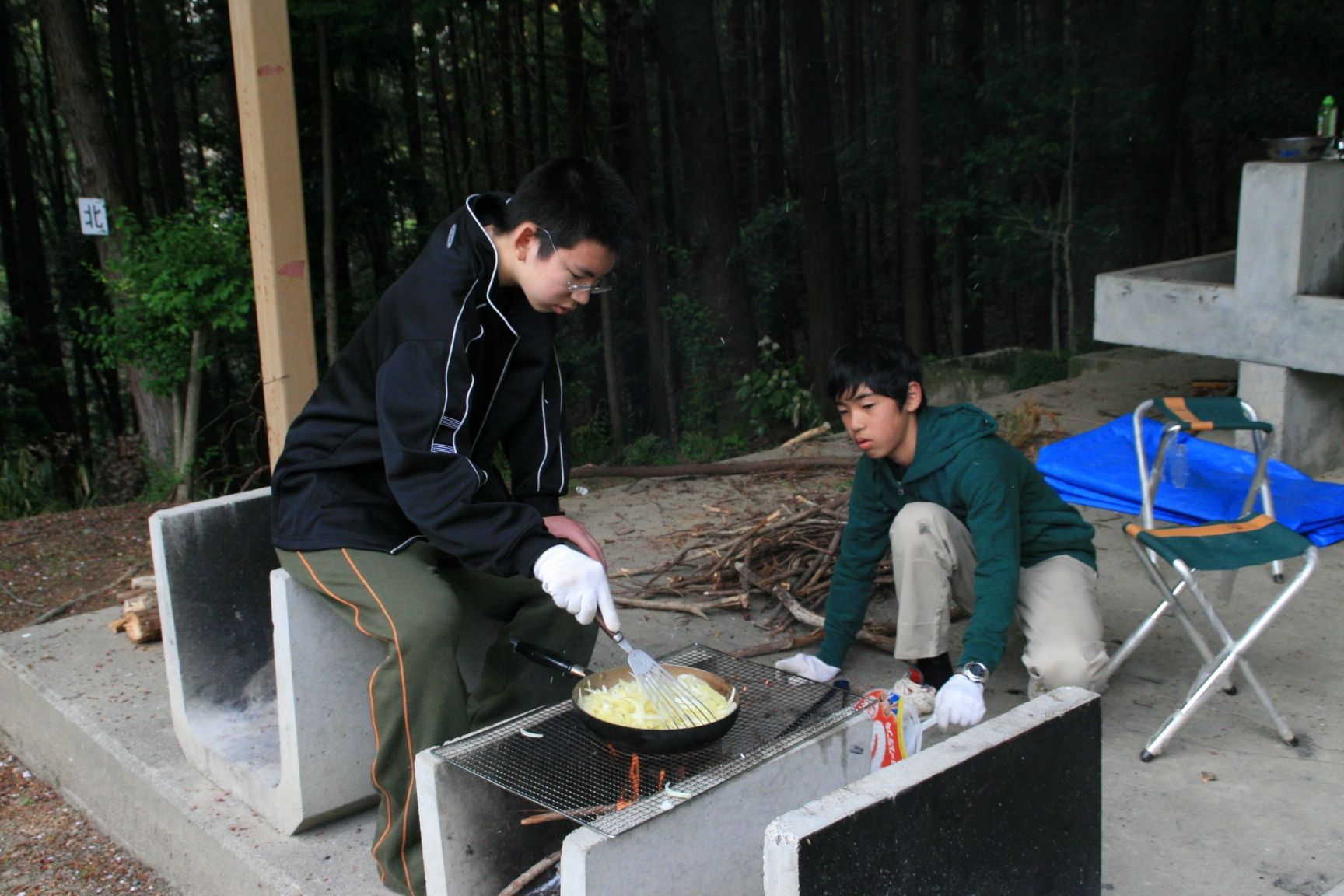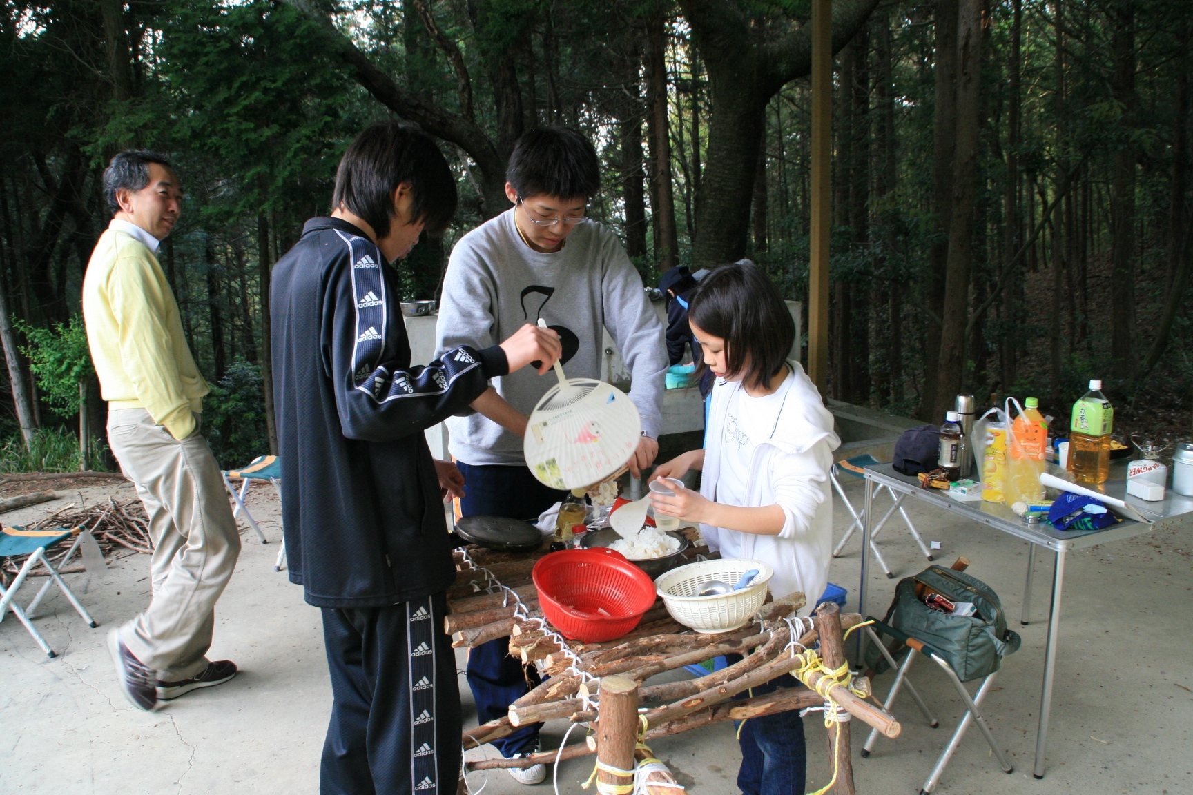 又、元カブ隊長の増田君が大阪から自転車で5時間かけて駆けつけてくれ、設営からテーブルつくりまで手伝ってもらい、ベンチャーも3人参加し、にぎやかなキャンプとなりました。