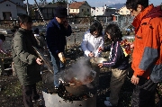 晴天となり冷え込みの厳しいなか、ボーイ隊は、約40人分のお雑煮作りを手伝いました。
