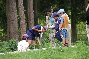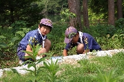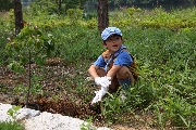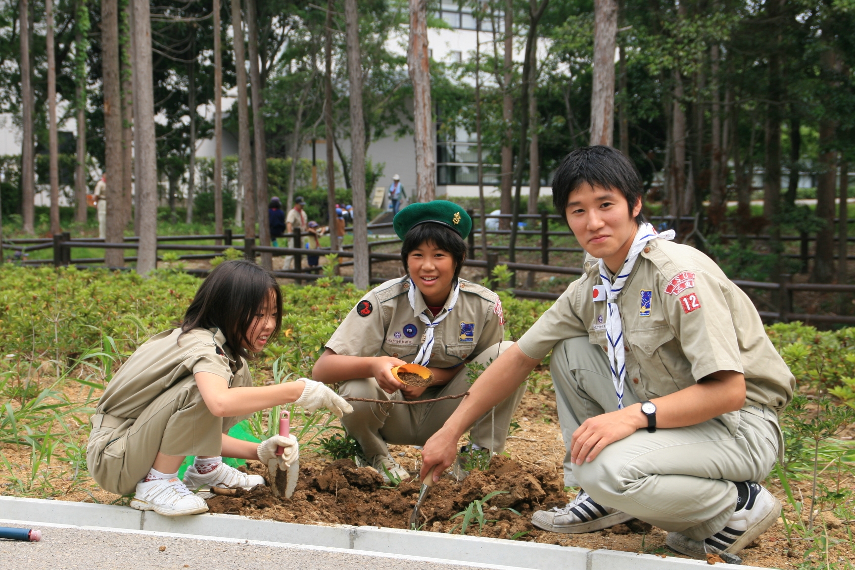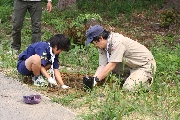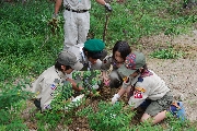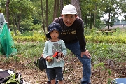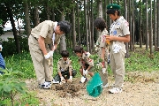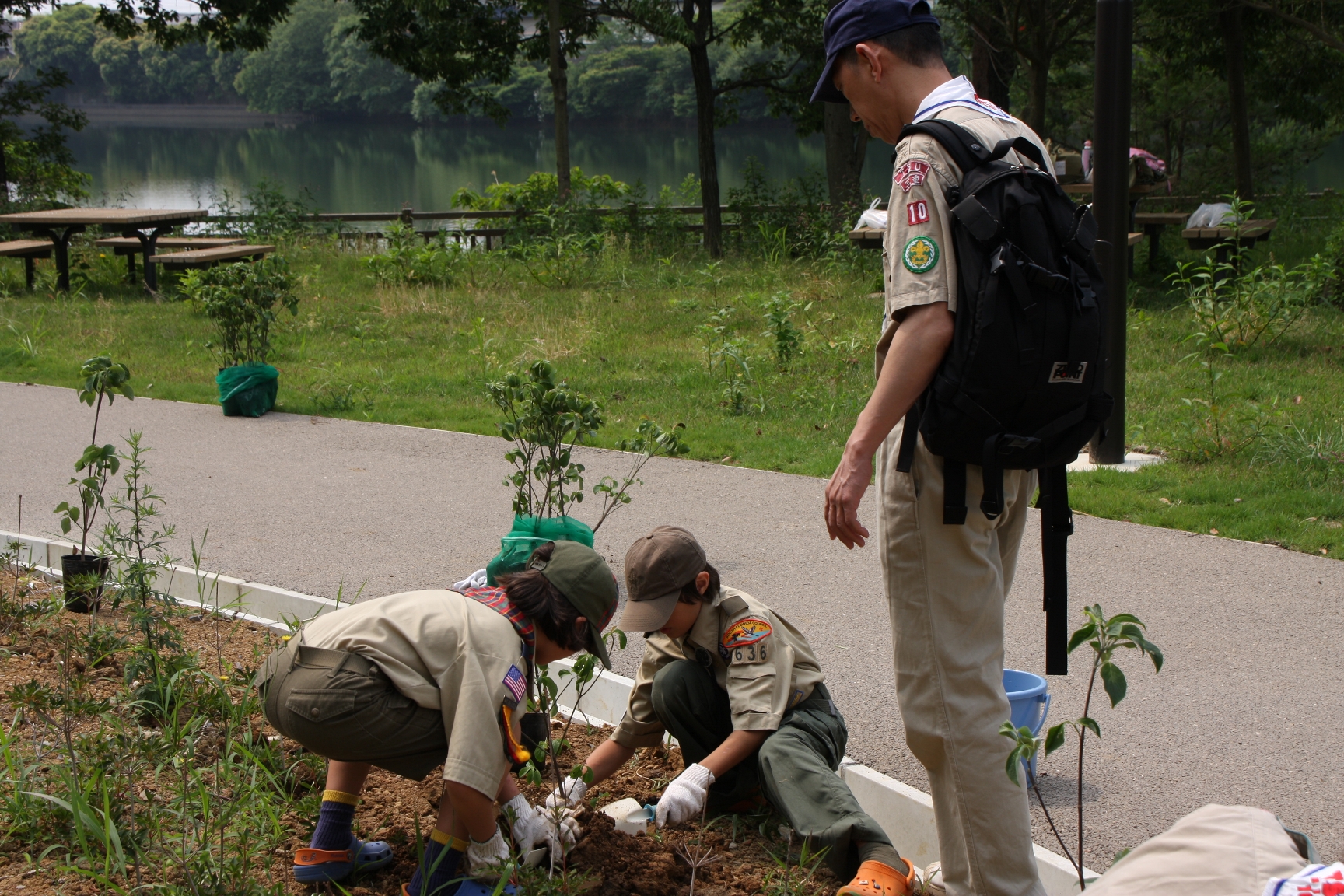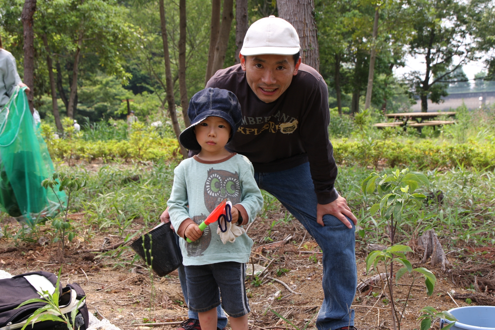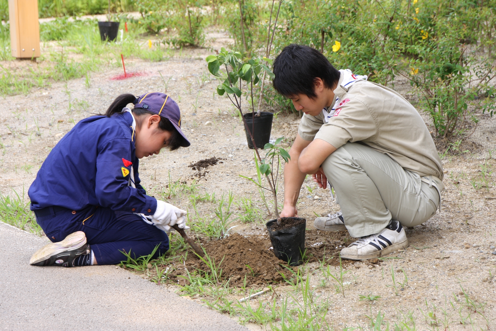 土が非常に固く、穴を掘るのにとても苦労していましたが、大人の力も借りて、何とか植樹することが出来ました。