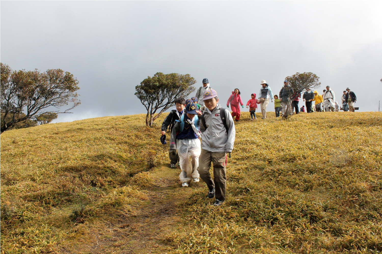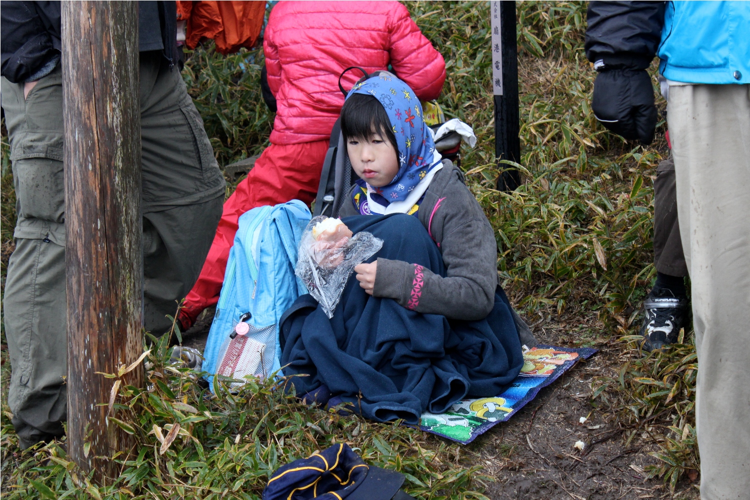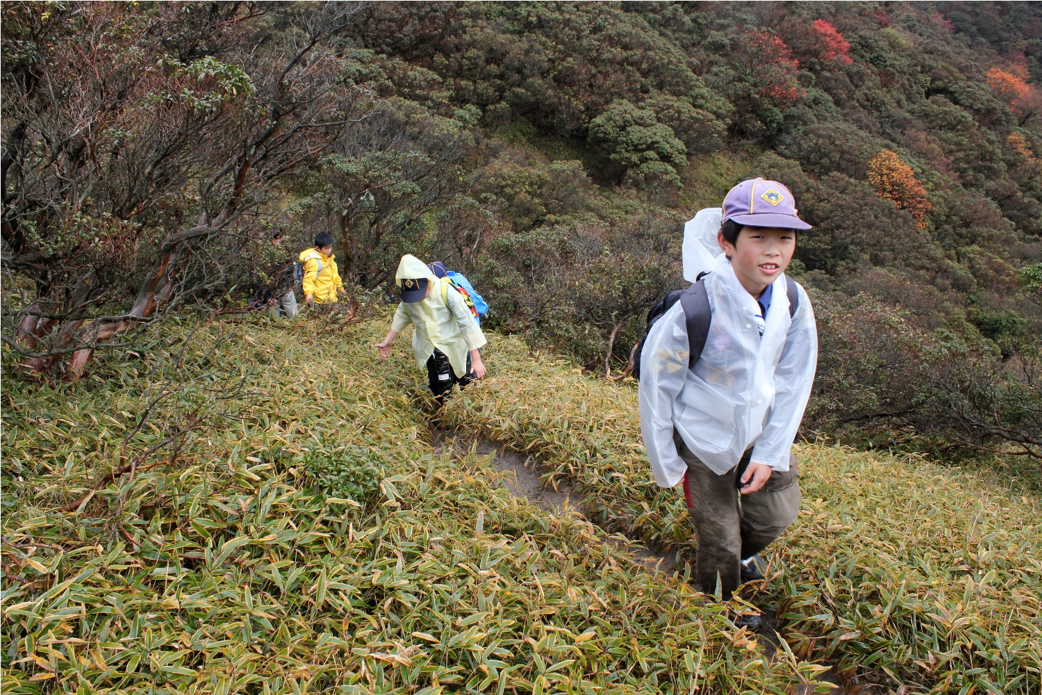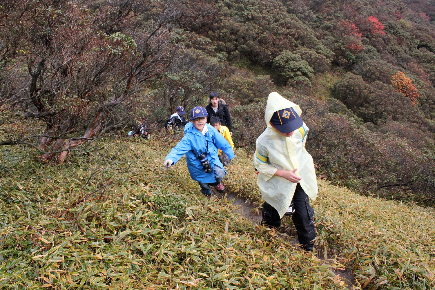 途中から雨が降り、足場も悪い中の登山となりましたが、皆頂上まで無事に登る事ができました。