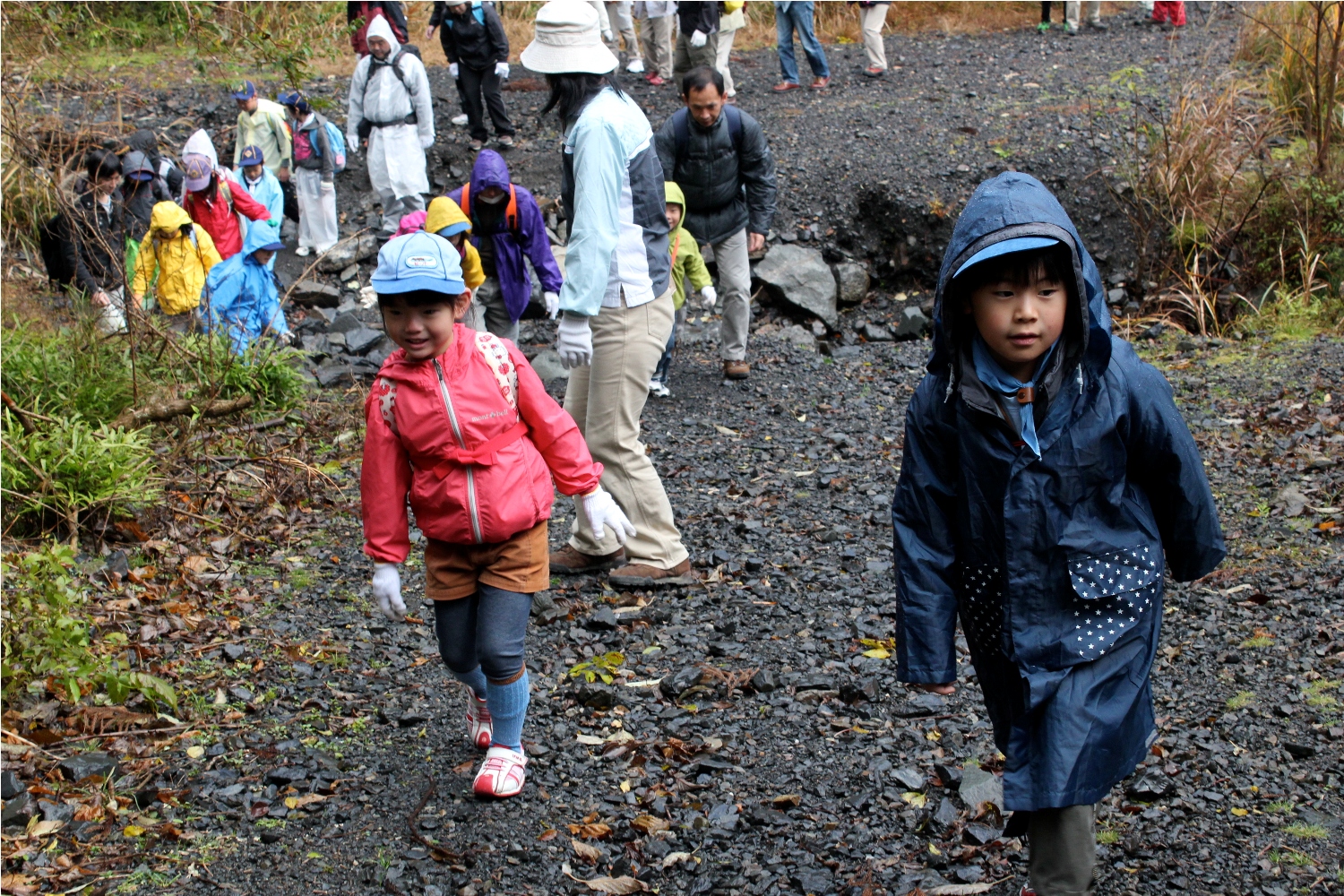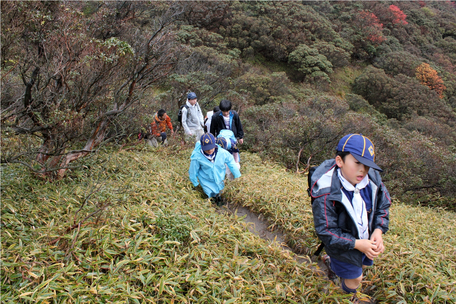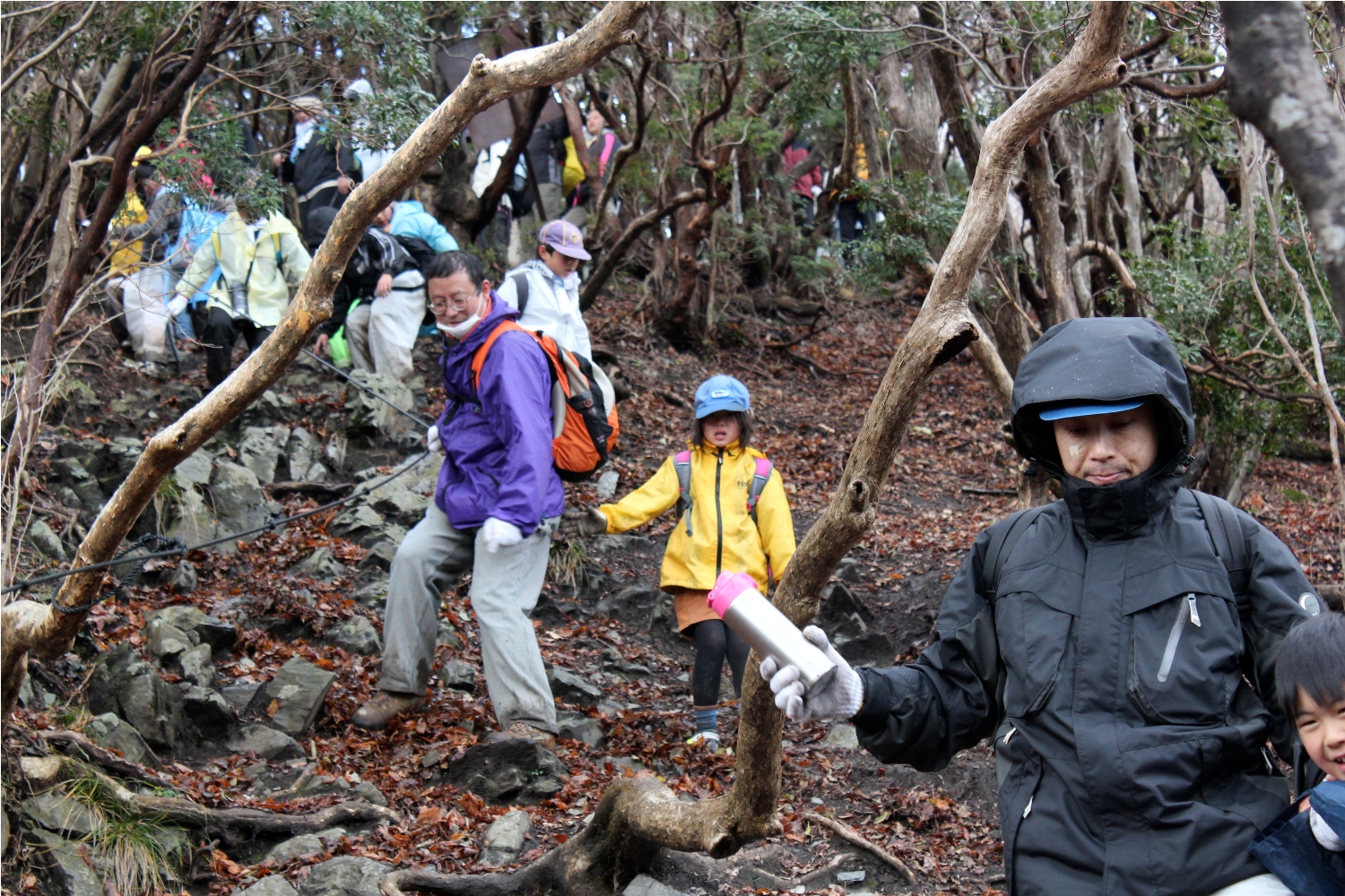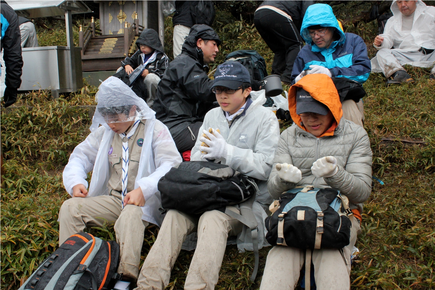 途中から雨が降り、足場も悪い中の登山となりましたが、皆頂上まで無事に登る事ができました。