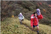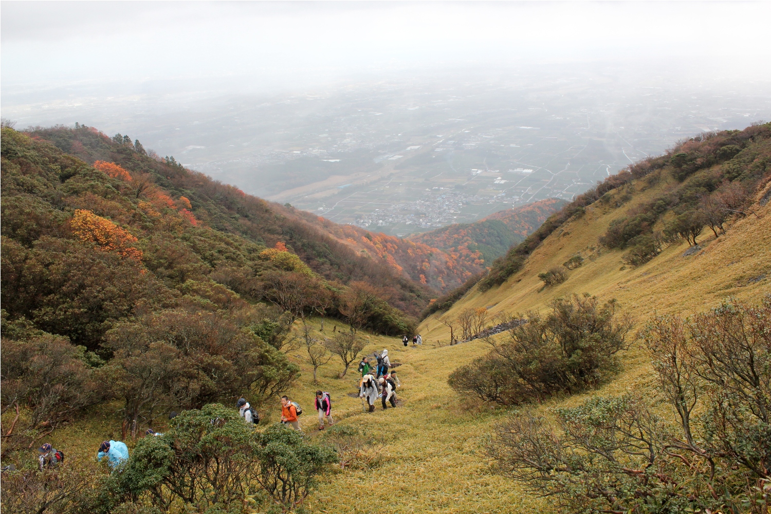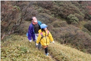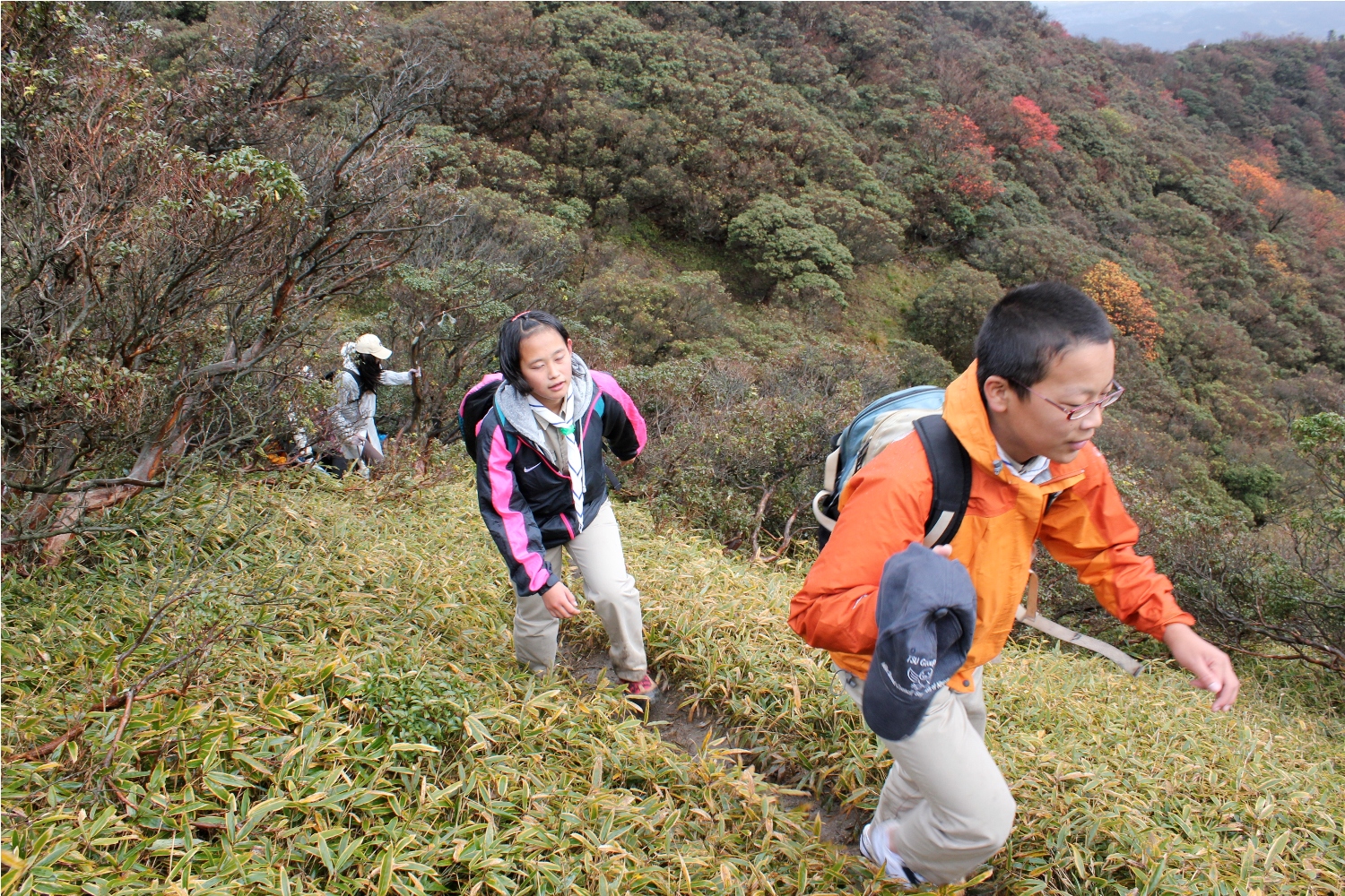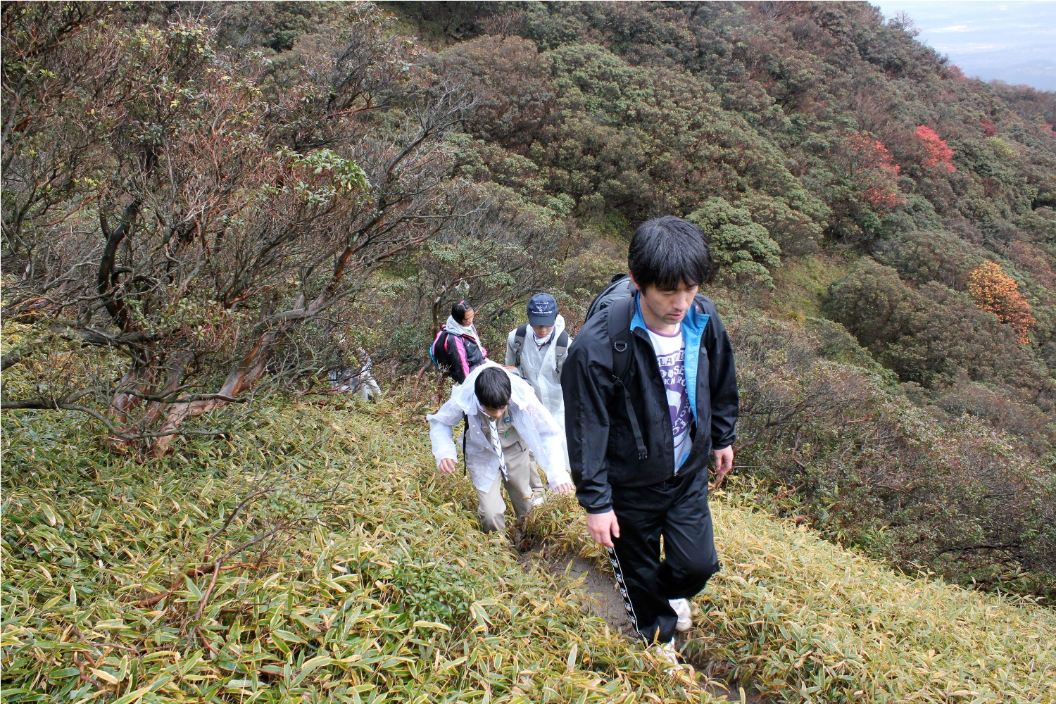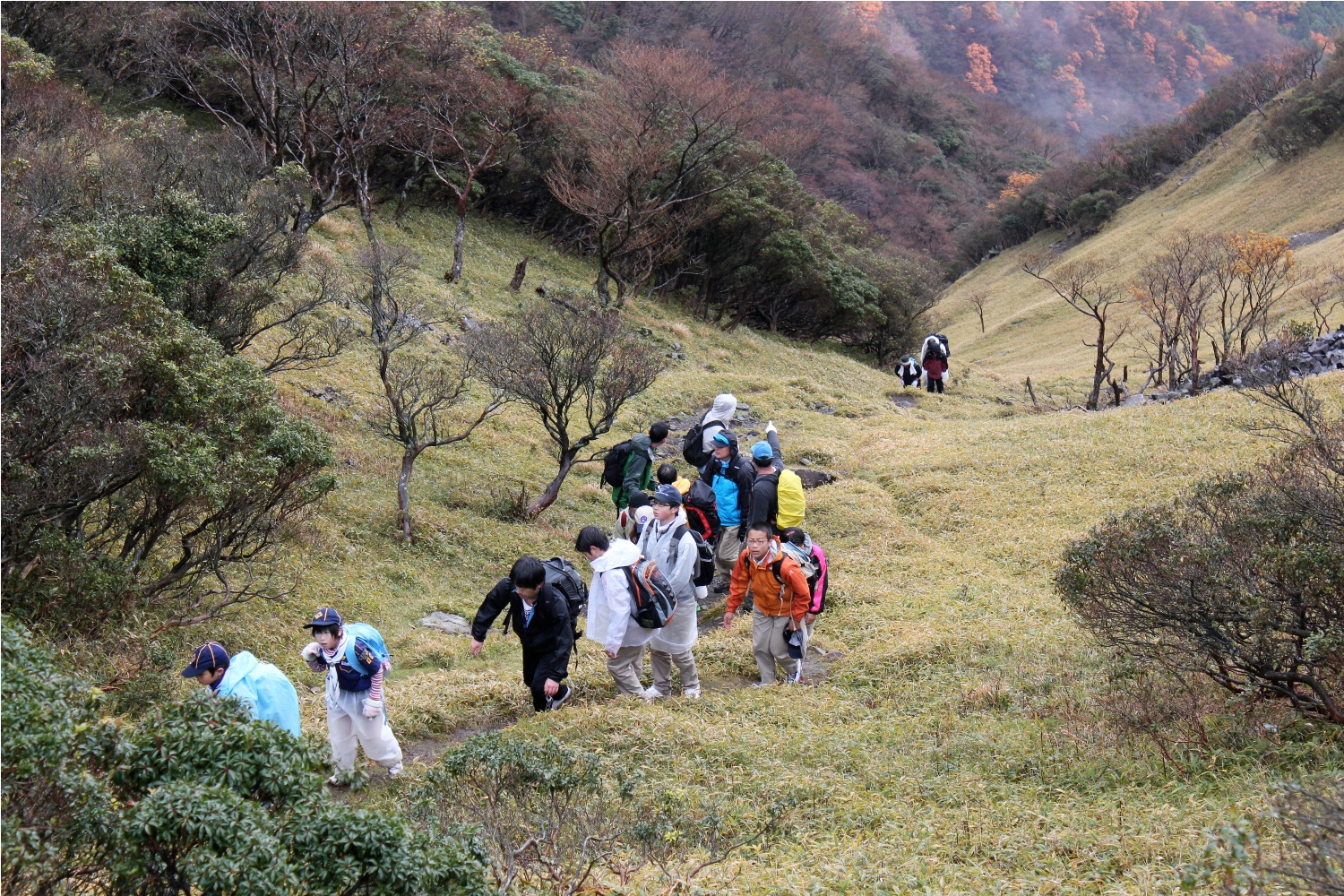 途中から雨が降り、足場も悪い中の登山となりましたが、皆頂上まで無事に登る事ができました。