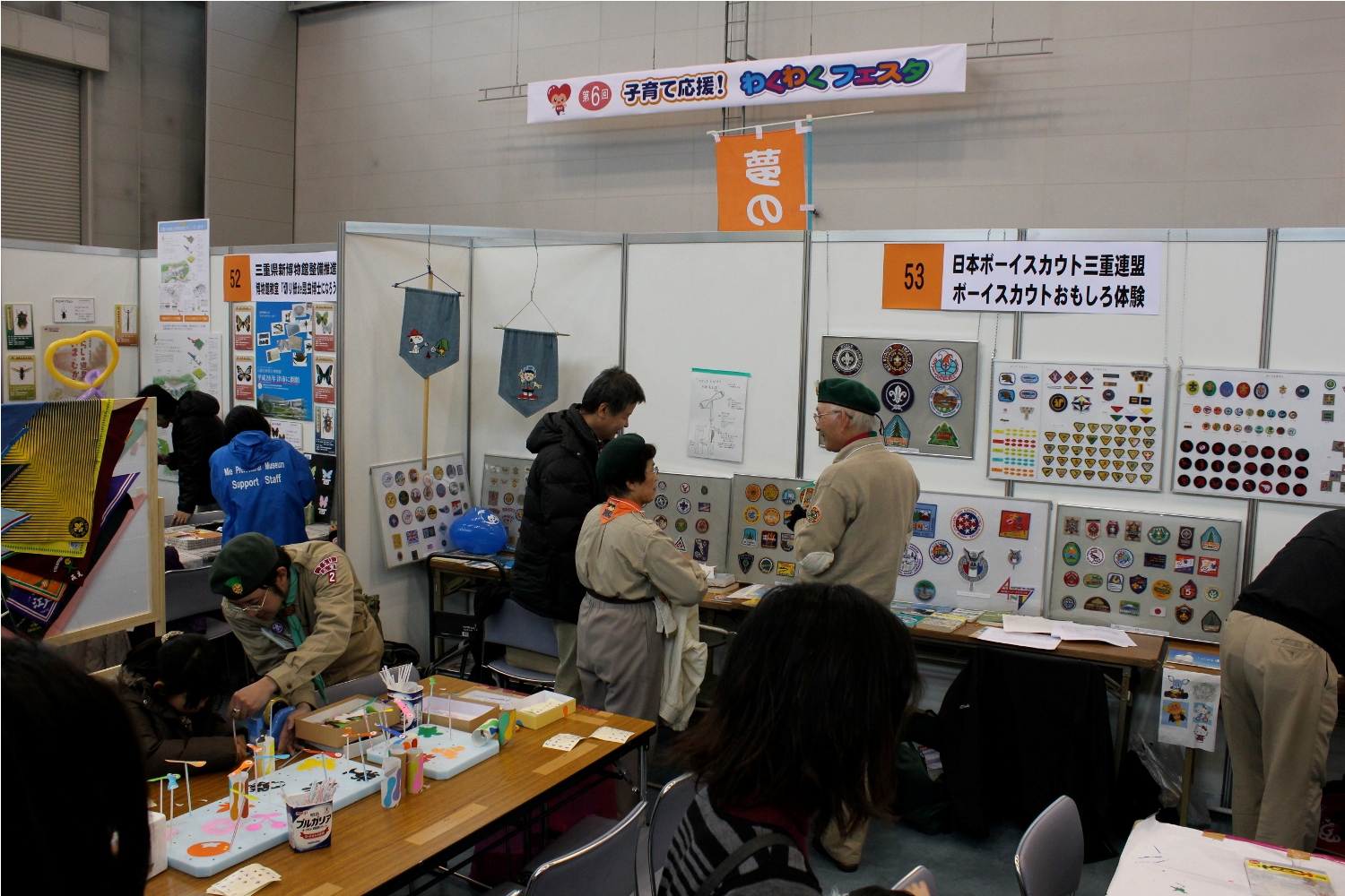 三重県・みえ次世代育成応援ネットワーク主催のわくわくフェスタに指導者はボーイスカウト三重連盟ブースのお手伝いに、スカウトは見学に行きました。